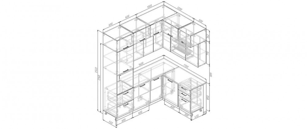 Фасады верхних модулей со свесом 12 мм дают возможность использовать без установки ручек.